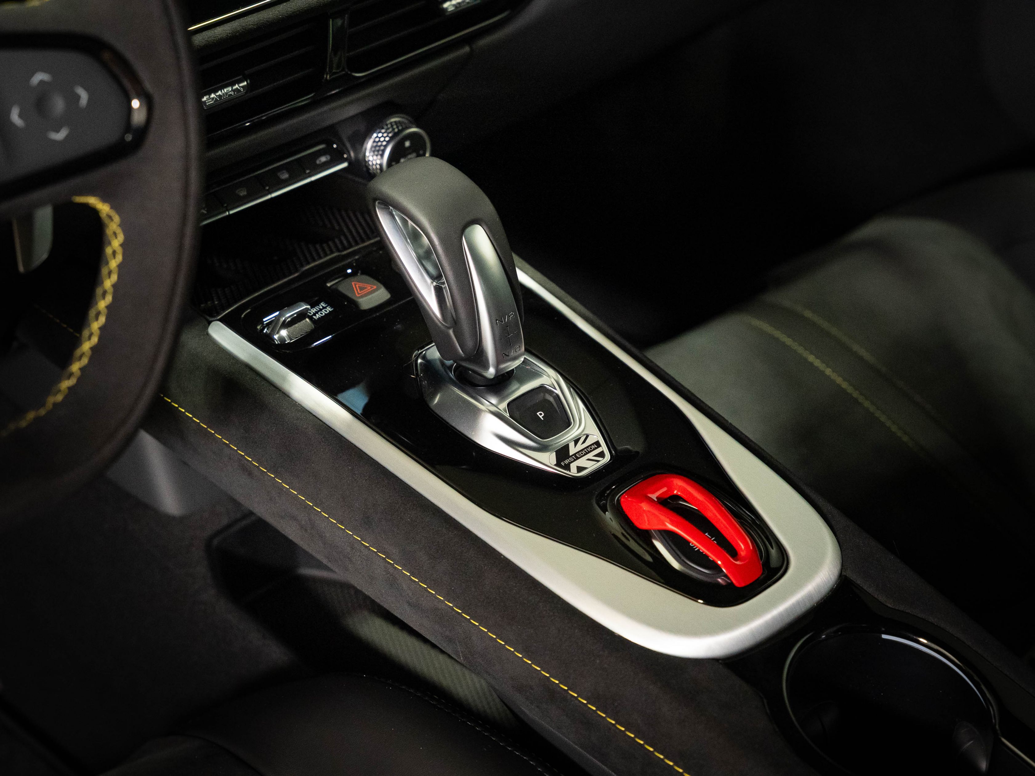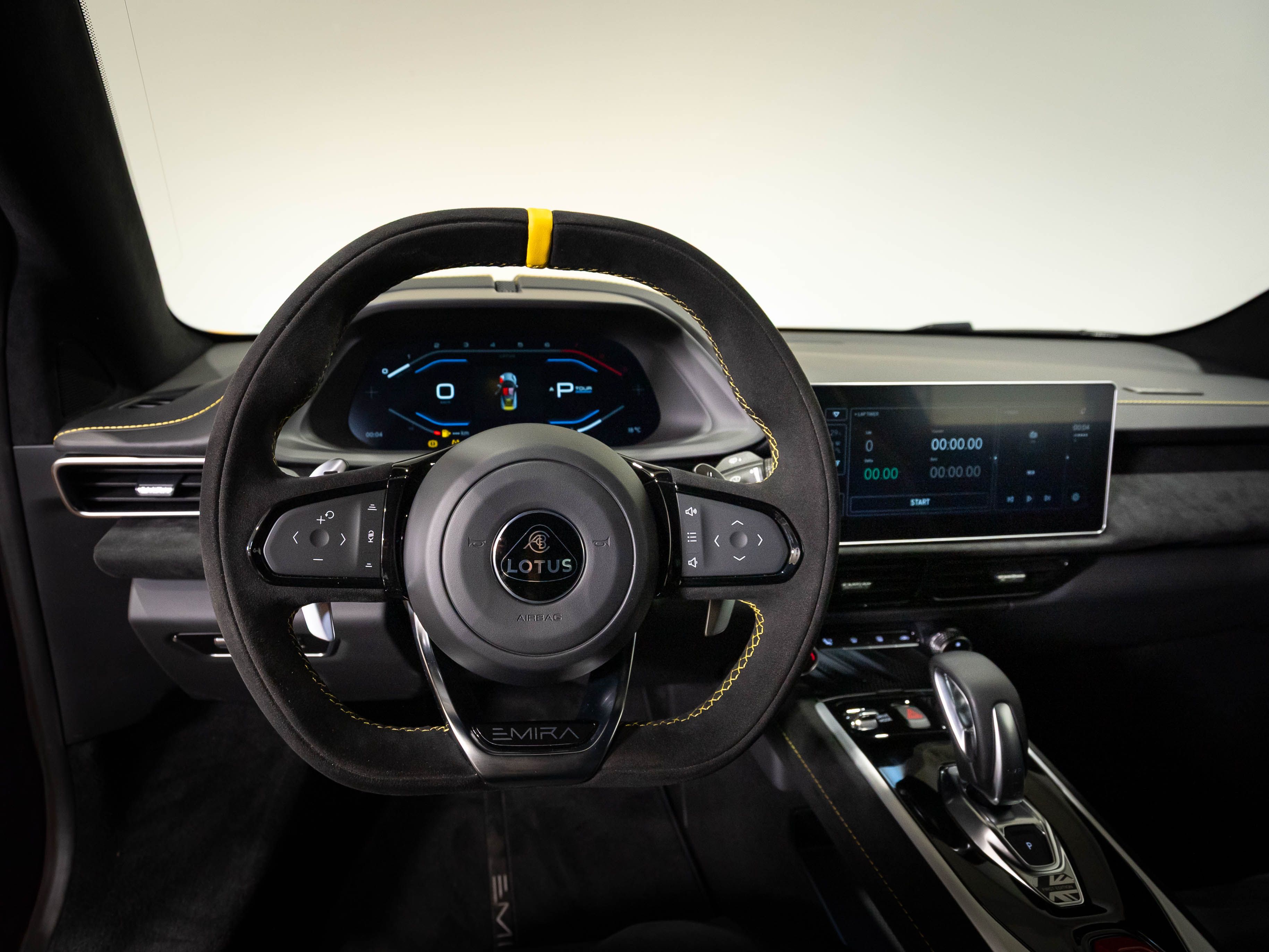 Volant : Alcantara noir, inserts jaunes et surpiqûres jaunes